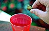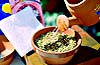 ●竹グシにのせて穴へ落とします。