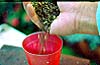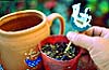 ●幼い根に負担をかけぬように、あらかじめ用土を湿らせます。 |