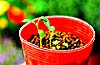 ●18日が経過。ポットの中央に小さな芽。(分かるかな〜)