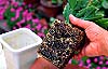 ●鉢の形にそって根がビッシリ。用土にはパーライトが混合されていました。 |