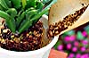 ●鉢底に大粒の赤玉土を敷きこんでいます。